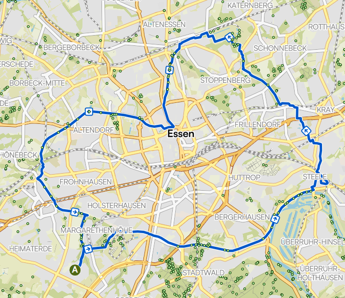 Nach einer Stärkung im Weltkulturerbe dann über Altenessen und den RS1 zurück nach Haarzopf.